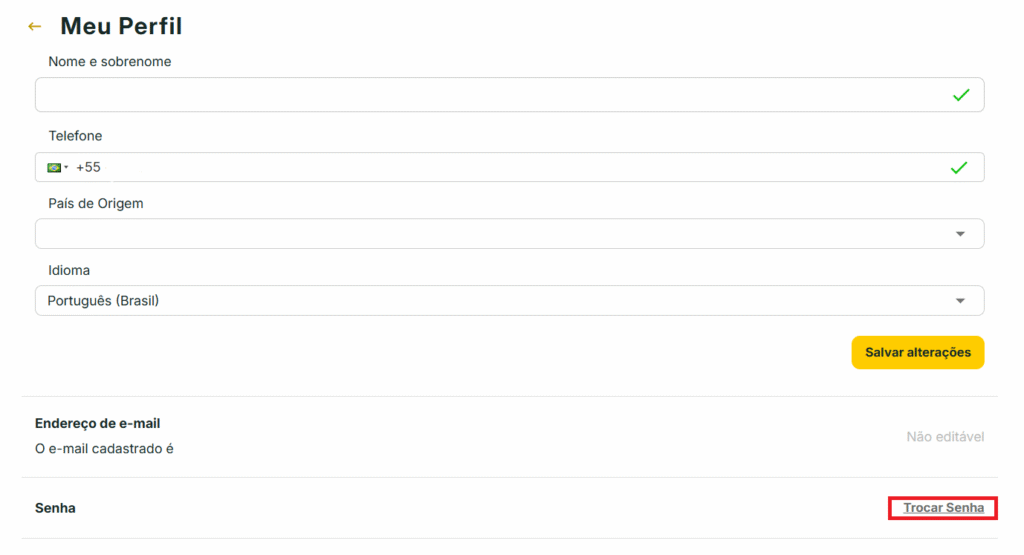3. Insira sua senha atual e a nova senha, após clique em “Salvar nova senha”