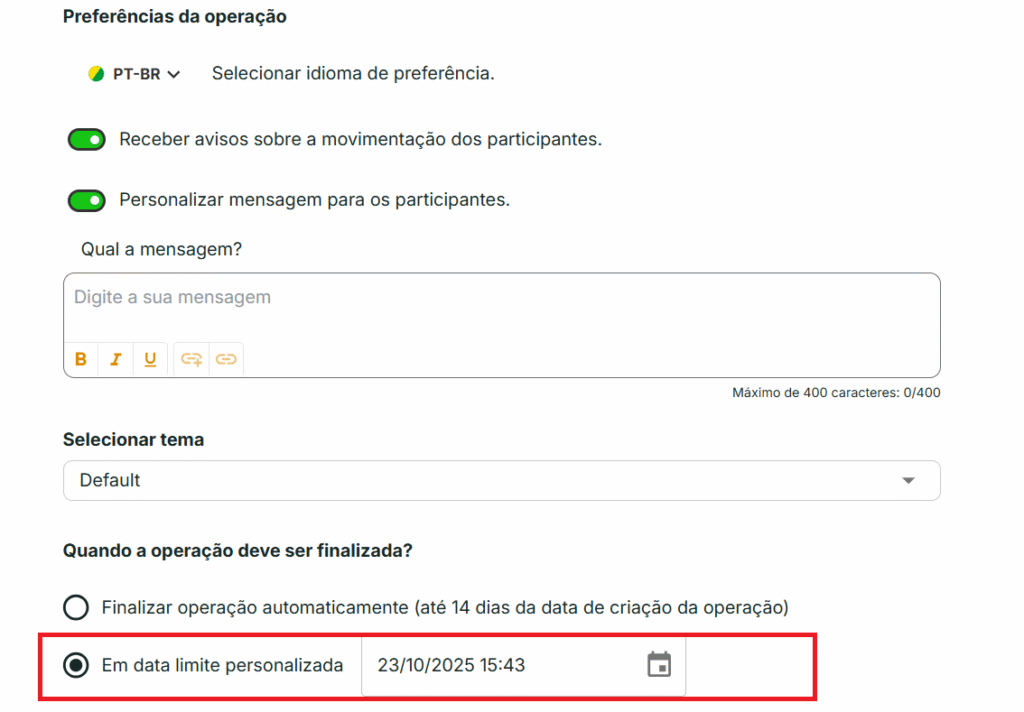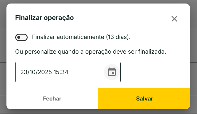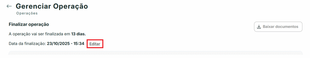 Se por algum motivo, após a criação da operação e antes do prazo de vencimento, você tiver que alterar a data e o horário de finalização, faça o seguinte passo: