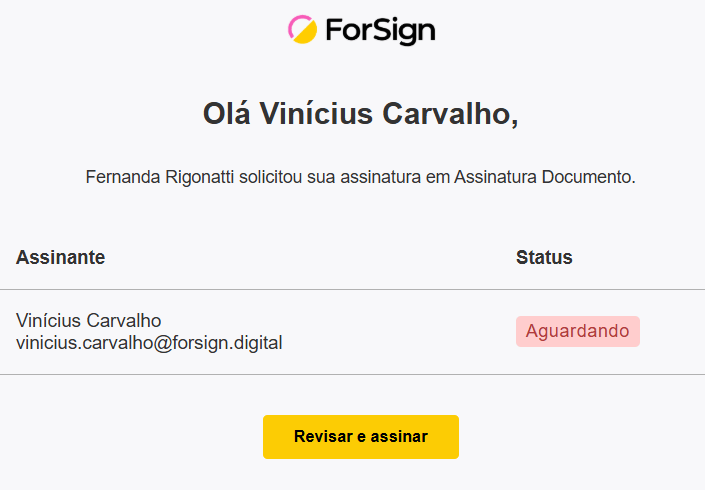 Você receberá um e-mail informando que sua assinatura foi solicitada em uma operação, para acessar clique em “REVISAR E ASSINAR”.