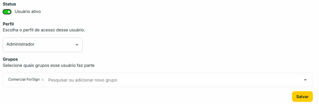 - Avançado: tem acesso a todos os documentos e às configurações, mas não pode criar grupos, ver área financeira e área de desenvolvimento.