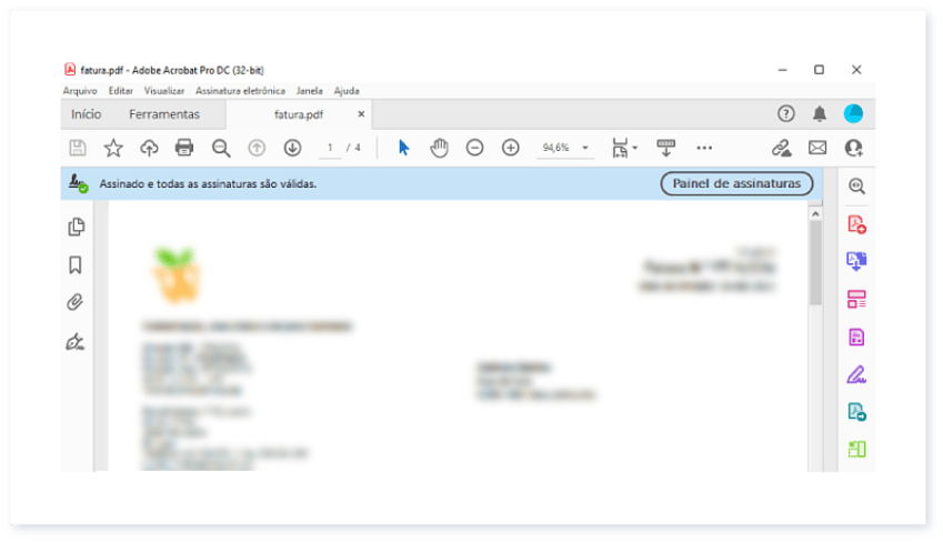 1. Abra o documento assinado que pretende verificar no Acrobat Reader.