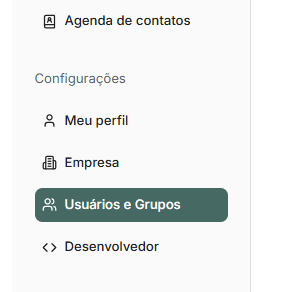 Na tela inicial (Home), acesse o menu lateral e clique em “Usuários e Grupos”.