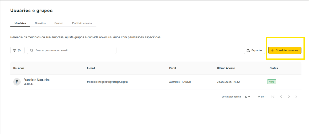- Clique no botão “Convidar usuários”
