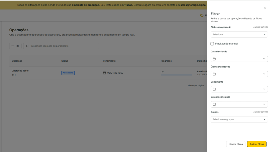 - Última atualização: filtra pela data da última modificação da operação