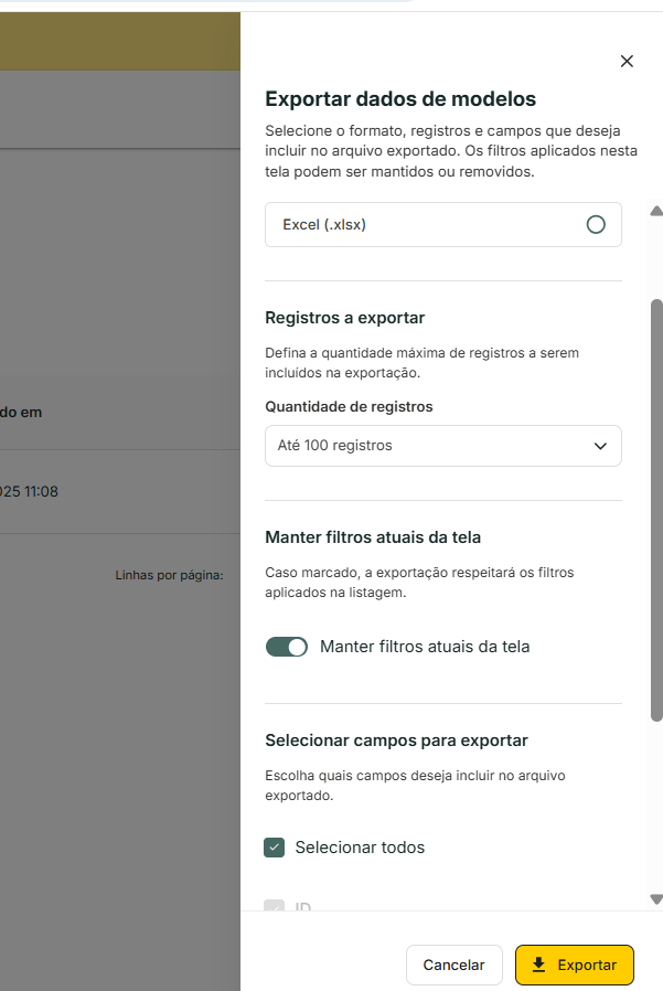 - Cancelar: fecha o painel sem exportar