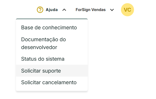 Ao acessar a página inicial da plataforma, é possível encontrar no canto superior direito o botão “Ajuda”, por meio do qual é possível solicitar suporte ao nosso time.
