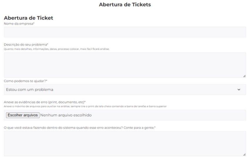 Se precisar de suporte em nossa plataforma, é necessário abrir um ticket para obter assistência adequada. Siga as instruções abaixo para abrir um chamado.