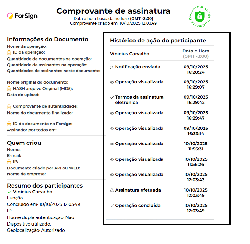 - Comprovante de autenticidade: https://validator.forsign.digital/